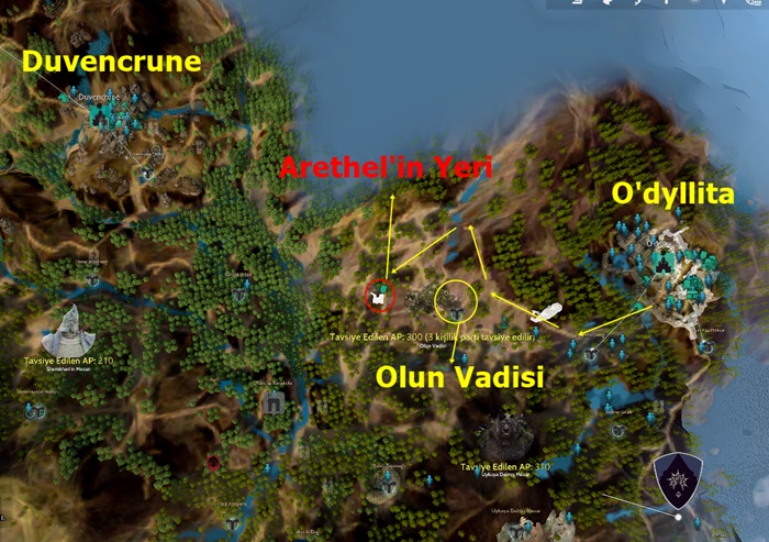Haritada yönlendirme uygulanmayan görevin lokasyonu Olun Vadisi’dir. Olun Vadisi’nin üst kısmında yer alan mevki’de Arethel’i bulabilirsiniz. Aşağıda resimli olarak tam lokasyon belirtilmiştir.