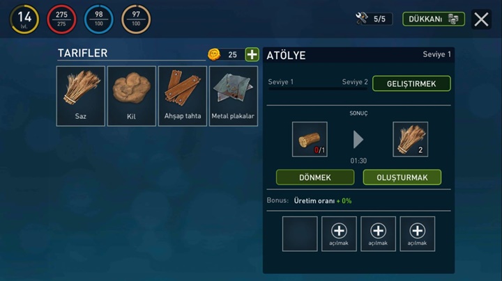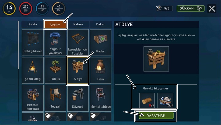 Raft Survival Ocean Nomad mobil hayatta kalma üzerine kurgulanmış ve yapılmış bir oyundur. Oyunda daha ileri gidebilmek için belli başlı yardımcı olabilecek araçları üretmeniz gerekmektedir. Bunlardan biriside atölyedir. Atölye benzersiz işçilik araçları ve silah üretimi için bir çalışma alanıdır.