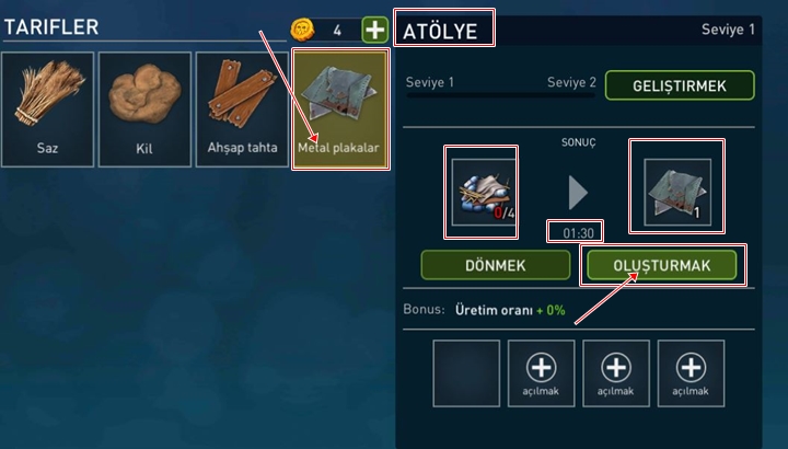 Metal plaka üretebilmek için dört tane önemsiz adı verilen malzeme ile atölyede metal plaka üretin.