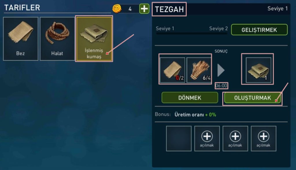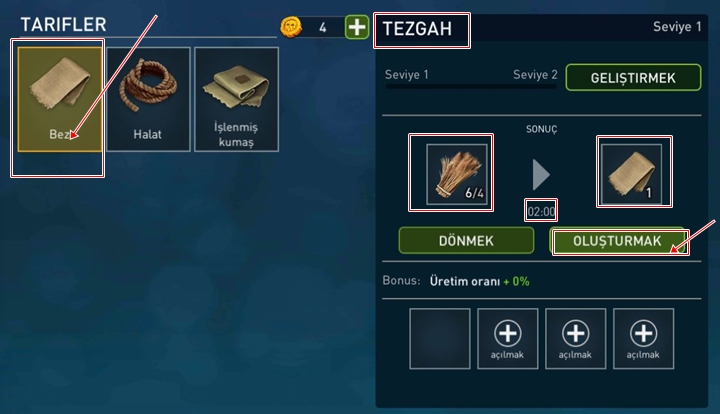 İki adet odunu saza çevirin ve dört tane saz elde edeceksiniz. Bu dört tane saz ile de üretmiş olduğunuz tezgâh yardımı ile bir adet bez üretin.
