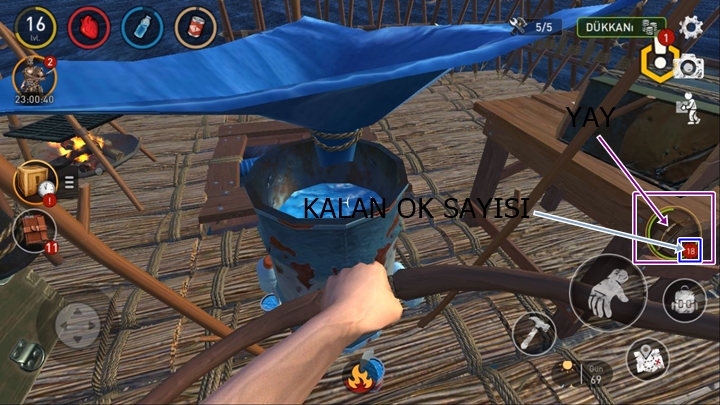 Raft Survival Ocean Nomad mobil hayatta kalma oyunudur. Yay ve ok hem sal güvenliğiniz sağlamak için hem de diğer ada ve enkazlara gittiğinizde yakın temasa girmeden tehdit unsurlarını uzak mesafeden etkisiz hale getirmenize de olanak sağlar. Her ne kadar basit bir silah olsa da işlevi büyüktür