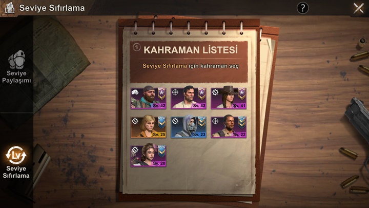 Burada Seviye sıfırlama kısmına girin ve sıfırlamak istediğiniz kahramana tıklayın.