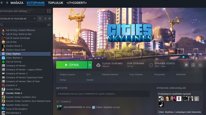 Biz bu anlatıda Cities Skylines oyunundan örnek vereceğiz. Kütüphanede ilgili oyuna sağ tıklayın ve Özellikler deyin.