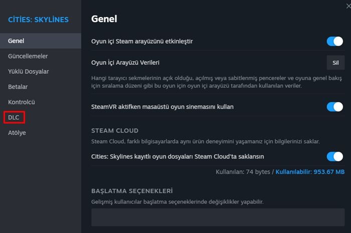 Sol kısımdan DLC menüsüne tıklayın.