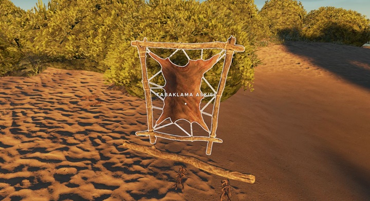 Stranded Deep de deri iki farklı şekilde bulunur. Ya enkazdan toplarsanız ya da adada öldürdüğünüz domuzların derisini bıçakla yüzersiniz ve ham deri elde edersiniz bunu da tabaklama askısına götürür ve işlenmiş deri elde edersiniz. Odun ve deriyi daha önce yapmış olduğunuz tabaklama askısının önüne koyun ardından klavyeden ‘C’ tuşuna uzun basılı tutun ve karşınıza açılır menü ile kırba (su kabı gelecek) gelecek ve ardından Mouse kaydırarak üretmiş olursunuz.