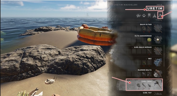 Tüm malzemeleri çantanıza koyun daha sonra klavyenizden ‘C’ harfine basın ardından üretim menüsünden balyoz gibi küçük simgeli (araçlar) olana tıklayın ardından ilkel çapaya tıklayın ve üretilmiş oldu.