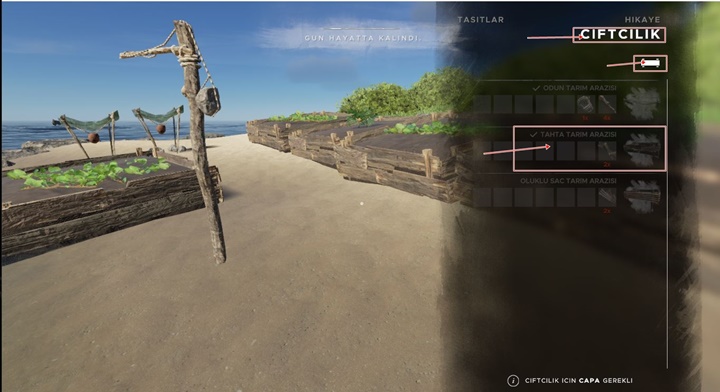 Gerekli malzemeleri ve ilkel çapayı çantanıza koyun daha sonra ‘C’ tuşu ile menüyü açın ardından ‘E’ tuşuna üç kere basın ve çiftlik menüsüne gelmiş olacaksınız. Ardından üçüncü sırada yer alan oluklu sac tarım arazisini seçin ve yerleştirin.Bu yazımızda Stranded Deep için hayatınızı sürdürmek için temel faktörlerden birisi olan çiftçilik hakkında neler yapılması gerektiğini adım adım bahsetmiş olduk. Yeni yazılarımıza göz atarak ihtiyacınız olan bilgiye kolayca erişebilirsiniz.