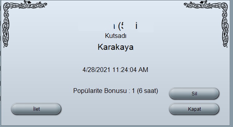 Kutsama sonucu mesaj olarak iletildi. Araştırma seviyemize göre 6 saat boyunca parişin sağladığı popülariteyi 1 olarak arttırdık.