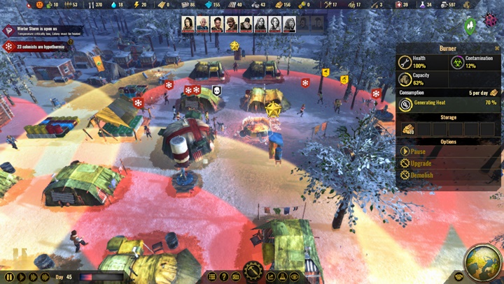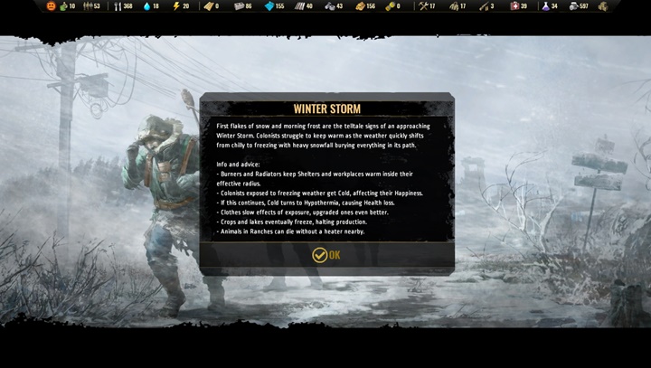 Oyuna bu versiyonundan itibaren dahil edilen hipotermi, kış fırtınası ile şehri etkisi altına alan, insanların donarak öldüğü bir negatif etkinlik. Etkilerini en aza indirmek için erken oyunda mutlaka Logging Camp kurmanız gerekir.