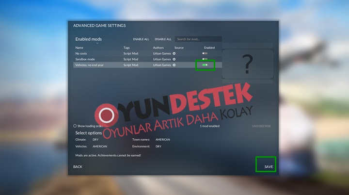 Artık yüklediğiniz mod dosyasının özelliklerini oyunda kullanabilirsiniz.