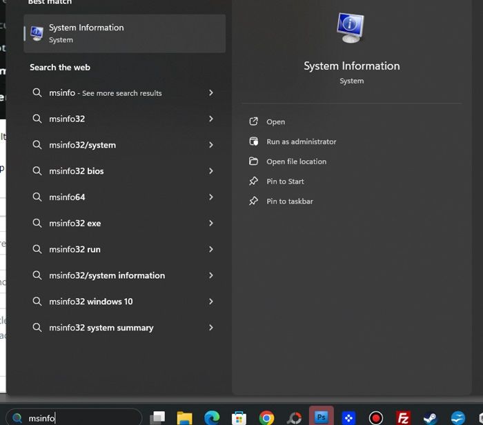 Bu oldukça Kolaydır. Windows arama kısmına “MSINFO” yazarak Sistem Bilgisi isimli uygulamayı çalıştırın.
